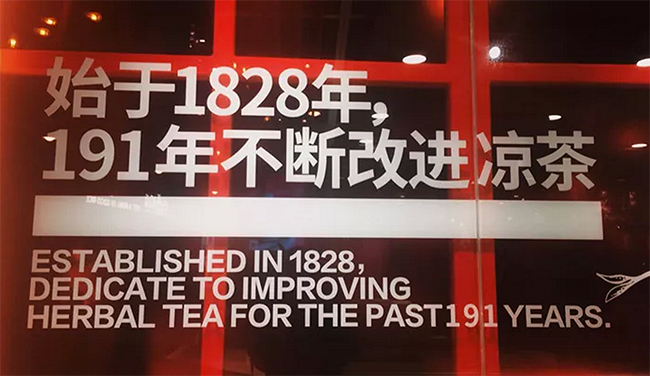 Q:将品牌创始年份“1828”提上品牌名这件事,也很有意思。“王老吉”这个老字号本身,对门店有什么加乘作用呢?包袱肯定也是有的吧?