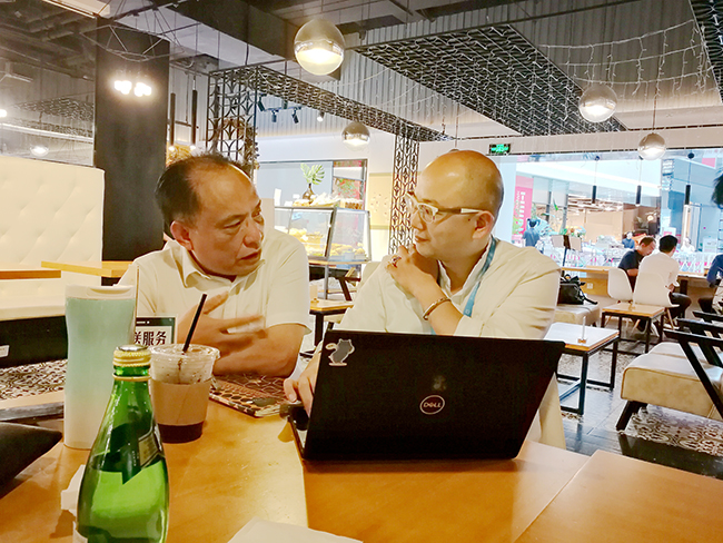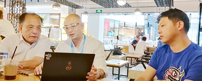 联盟朱惠成主席同盒马蔡凌灏总经理、倪豪杰主管在交谈1828王老吉同盒马鲜生合作意向。