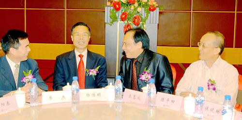 朱惠成主席同广东省工商联书记杨浩明,上海工商联副主席陈平田,上海市社会团体管理局副局长单杰进行工作会谈交流。